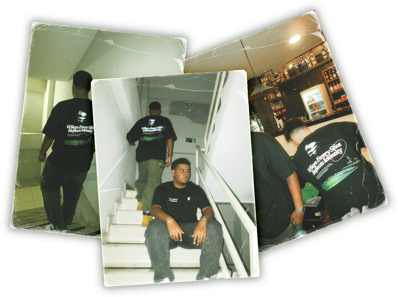 Nossa inspiração vem das ruas, da arte que nasce nos muros, da música que ecoa nos fones e das histórias que se vestem em silêncio. Cada peça é uma tela em branco que carrega conceito, atitude e essência. Não criamos apenas roupas. Criamos uma linguagem visual, uma narrativa que conecta quem tem algo a dizer, mas prefere mostrar. Porque vestir-se também é comunicar, questionar, provocar.